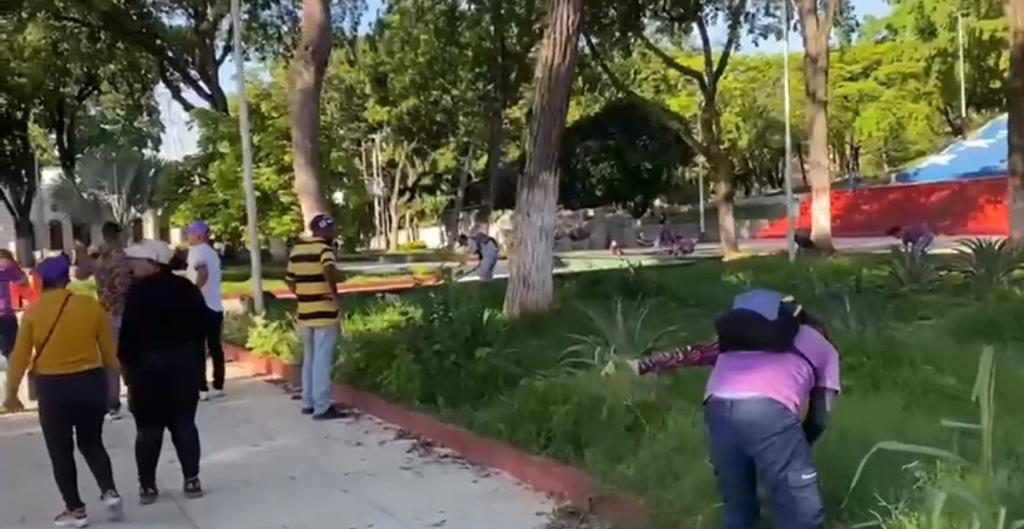En vista del estado e abandono y desidia en el que el gobierno regional de Guárico mantiene la plaza Bolívar de San Juan de Los Morros, a pesar de que está ubicada frente a la sede de la Gobernación, el personal adscrito a Servicios Públicos de la alcaldía de Roscio, se desplegó a lo largo de estos espacios, para remozarlos y hacer un mantenimiento integral, de cara a las festividades en honor a San Juan Bautista, el próximo 24 de junio.