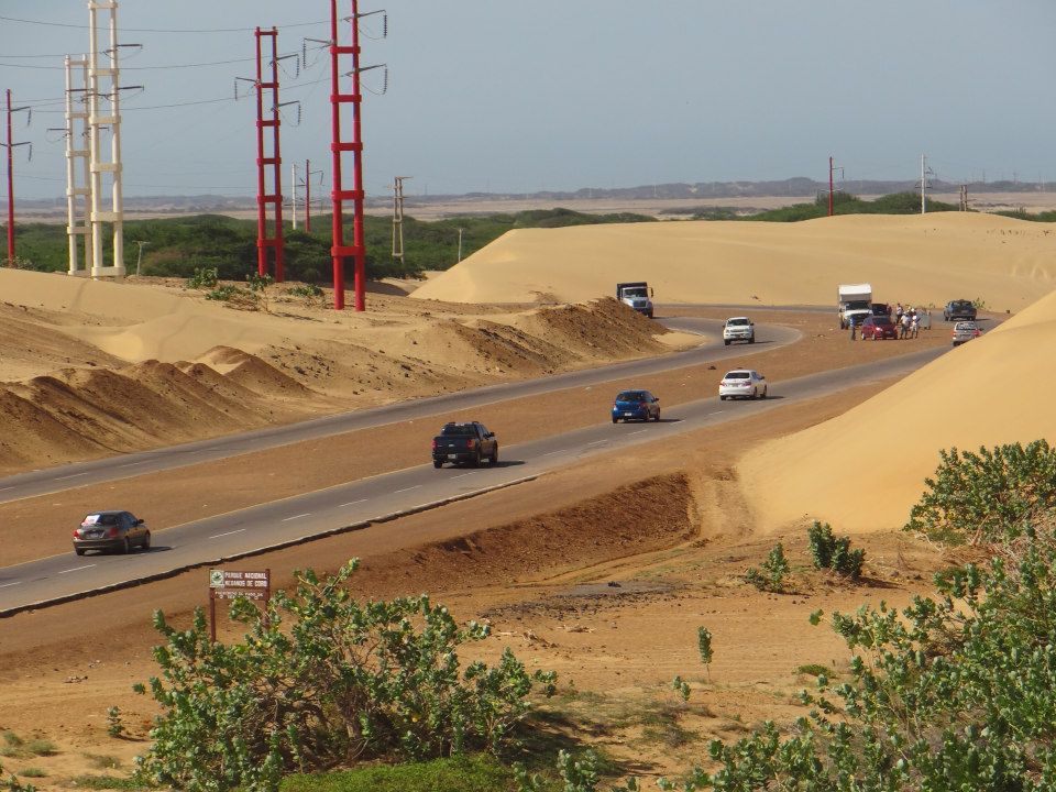 En la travesía por este impactante territorio venezolano, hacia el Occidente, nos encontramos con los Médanos de Coro, estado Falcón, en de la vía que conduce a la Península de Paraguaná.