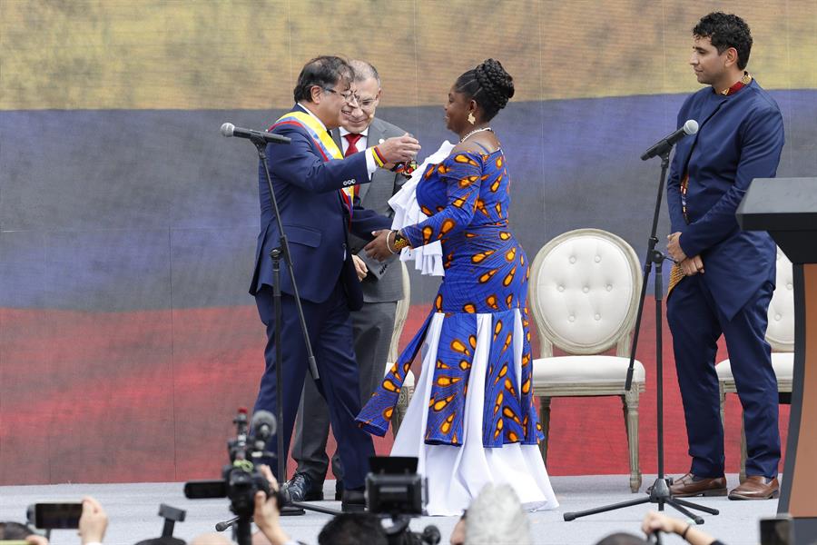 Tras ser juramentado de manos de Roy Barreras, presidente del Senado y haber recibido la banda presidencial por parte de la senadora María José Pizarro, el nuevo mandatario de Colombia tomó juramento a la vicepresidenta Francia Márquez.