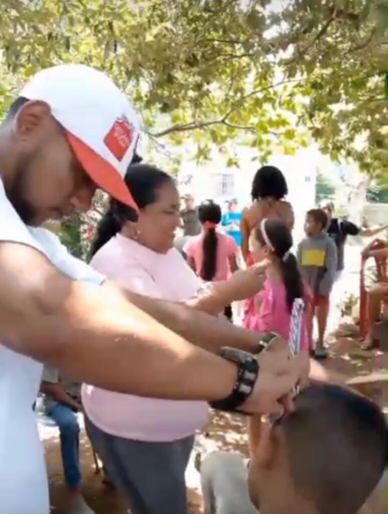 Rodeado de un nutrido grupo de personas Nieves hizo un abordaje comunitario, que contó además, con la presencia de muchos niños, reforzando el carisma y la sensibilidad del candidato por la muchachada orticeña.