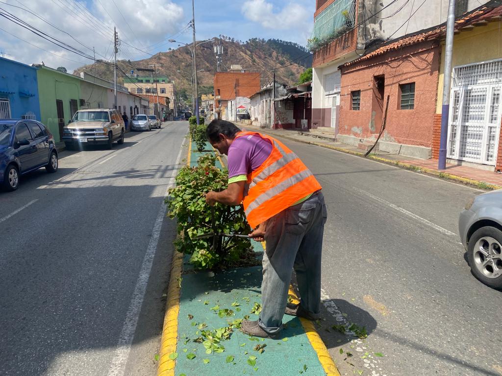 En este sentido; se encuentran desplegados en la isla central de la avenida Miranda (vieja) y (nueva) haciendo poda a las matas, de tal manera, que se observe linealidad en la Isla y genere armonía.